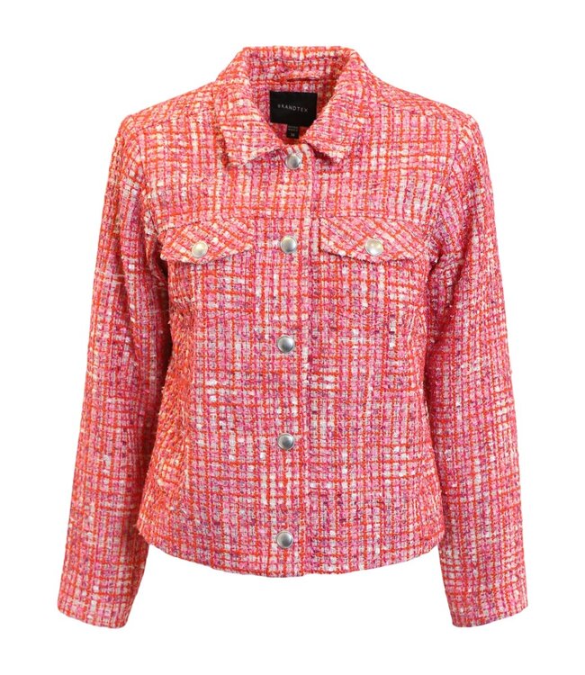 Dit chique dames jasje van Brandtex is een stijlvolle aanvulling op iedere garderobe. De gemêleerde roze tint geeft het jasje een luxe en frisse uitstraling, terwijl de subtiele structuur zorgt voor een elegant en modern effect. Ideaal voor wie graag gekleed voor de dag komt zonder in te leveren op draagcomfort.