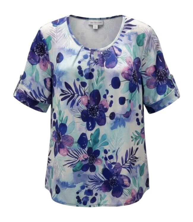 dames blouson shirt grote bloemen kobaltblauw K/M