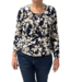dames blouson shirt travelstof blokprint marine- beige 3/4 mouwlengte