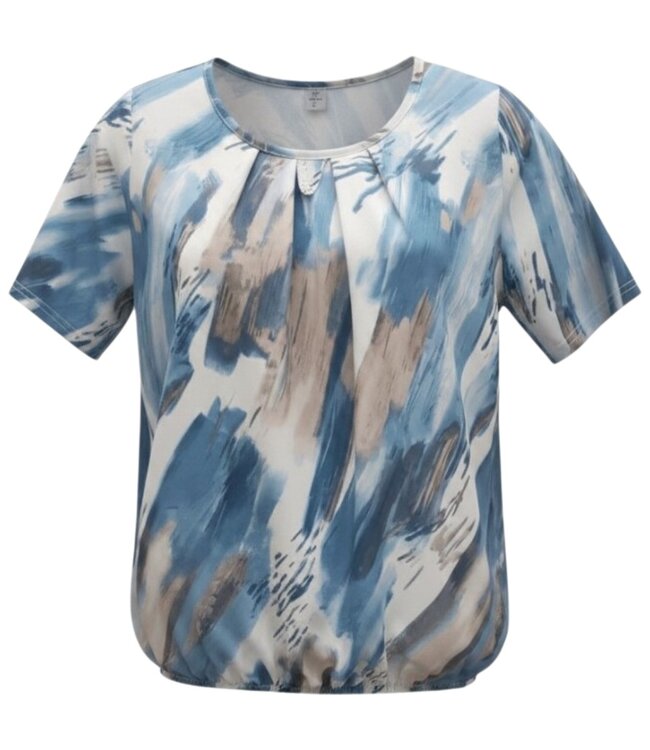 Beoordeel BLAUW dames blouson shirt veegprint beige- blauw K/M