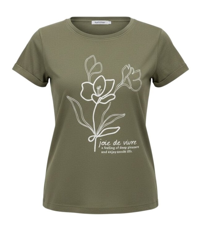 dames t- shirt met 3d- bloem opdruk khaki- groen Marinello