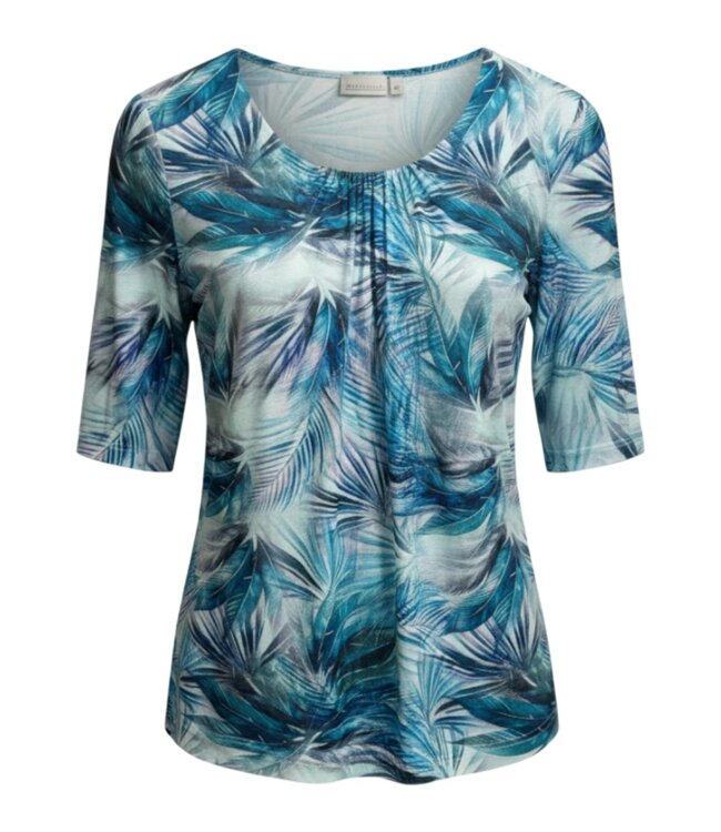dames t- shirt met plooitjes en print aqua- blauw Gabriella K.