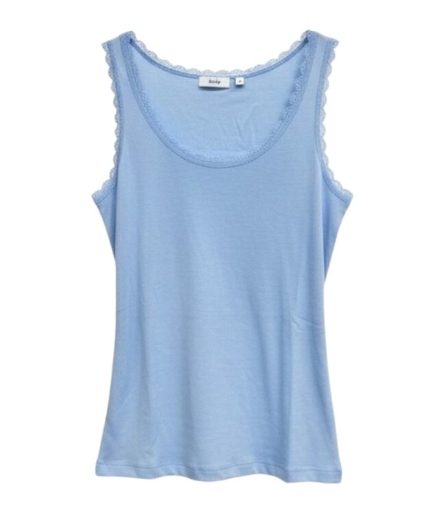 De ronde hals en armsgaten zijn afgewerkt met een subtiel kanten randje. Dit geeft het topje een vrouwelijke en elegante uitstraling. Dankzij de mouwloze pasvorm is het ideaal voor warme dagen of als laag onder andere kleding.