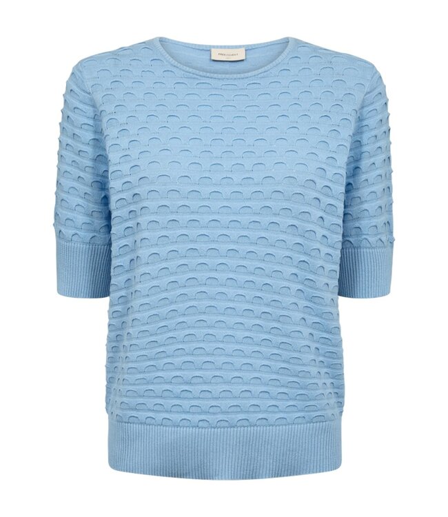 Beoordeel FreeQuent dames trui korte mouw relief Dodo blauw FreeQuent