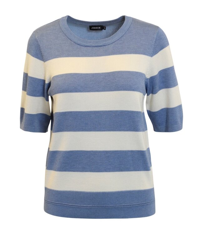 gestreepte dames pullover korte mouw blauw Jensen