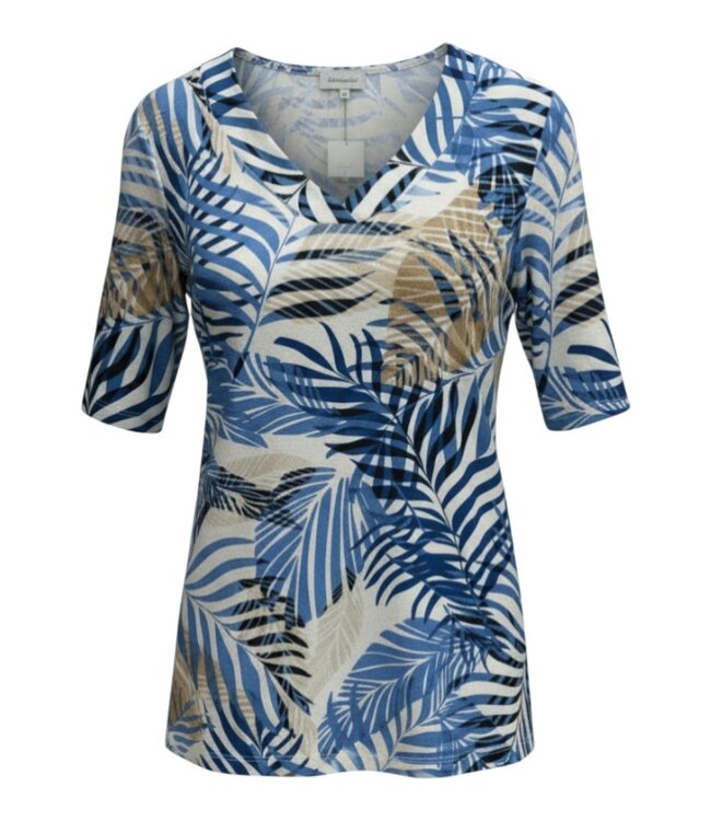 lang dames t- shirt met v-hals en varenprint blauw Marinello