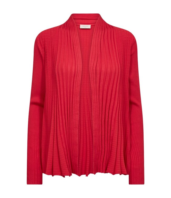 Het open dames vest Claudisse in de kleur rood is een stijlvol en veelzijdig item voor je garderobe. Dit vest heeft een elegante plissé structuur die zorgt voor een vloeiende en moderne uitstraling. Het openvallende model maakt het gemakkelijk te combineren met zowel casual als chique outfits.