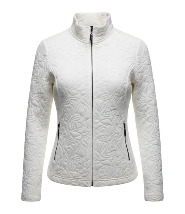 Details: ritssluiting, hoge kraag, subtiele structuur